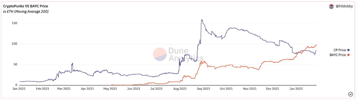 https://dune.xyz/hildobby/BAYC-vs-CryptoPunks