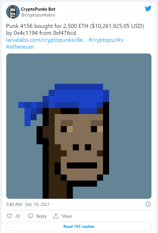 CryptoPunk Owner Explains Why IP Dispute Led to $10M Ethereum NFT Sale: https://decrypt.co/88041/cryptopunks-ip-complaints-punk4156-10m-ethereum-nft-sale