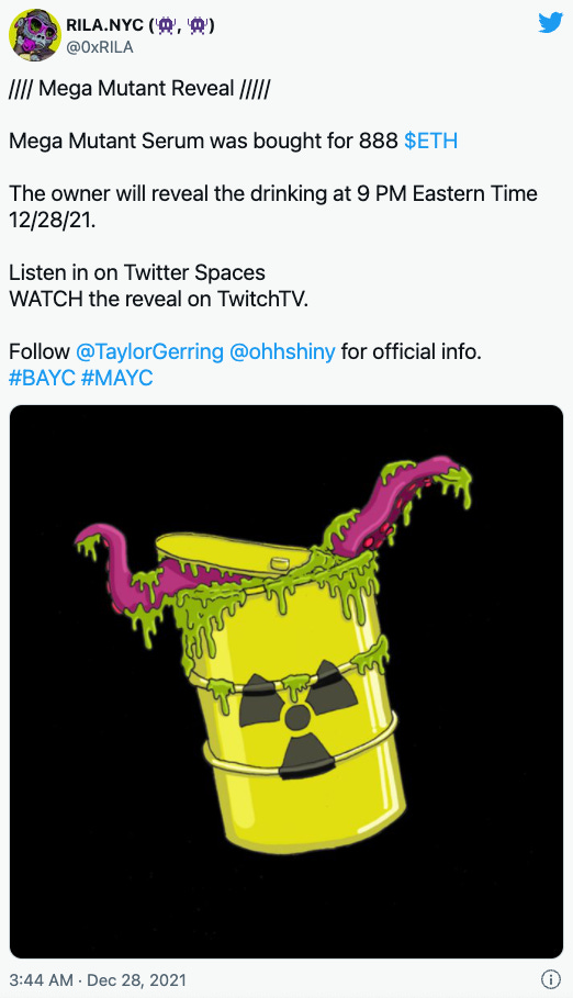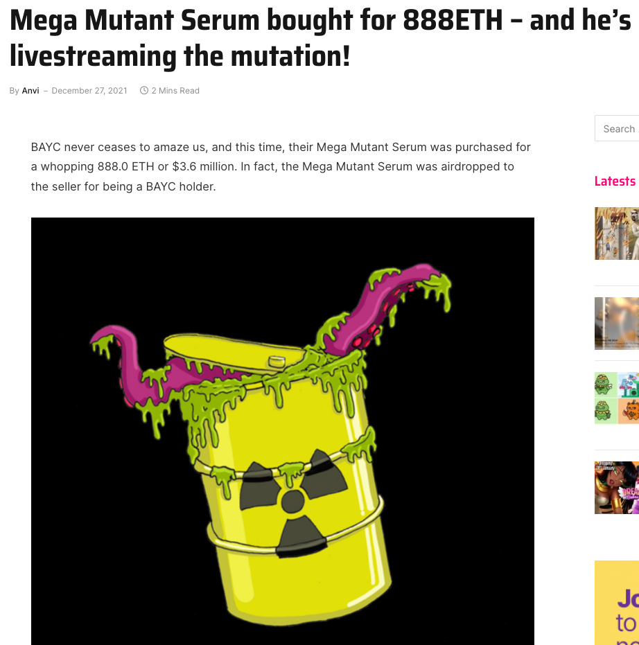 https://nftevening.com/mega-mutant-serum-bought-for-888eth-and-hes-livestreaming-the-mutation/