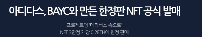 아디다스에서는 위와 같이 트윗을 올리면서, 기대감을 형성하였고, 아디다스 로고가 박혀있는 NFT 3만장을 컨셉으로 새롭게 발행하기로 하였습니다.