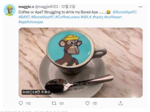 아무튼 그는 술을 마시고 그의 BAYC가 M3 세럼을 만나 Mega Mutant Ape가 발행되는 과정을 라이브 스트리밍 하였고, 이는 화제가 됐었습니다.