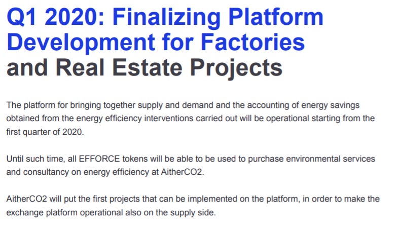 프로젝트 특성상 국책 업체 혹은 대규모 인프라 업체 파트너십이 필요해 보이는데, 아직 관련 내용은 찾아볼수 없습니다. 한편, 로드맵 초창기 내용을 보면, Efforce의 배경에 있는 에너지 절감 컨설팅 업체가 기존 진행하던 프로젝트로 구성한다고 되어있습니다. 정리해보면, 현재 모습으로서는 동사 단독으로, 다분히 아이디어 중심으로 진행하는 자금조달 프로젝트라고 정리됩니다.